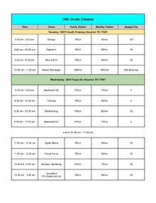 10th Grade Schedule & Tuition PDF Tuition and supply fees are listed per class. Supply fees are charged once per class for the school year. Tuition may be paid monthly, per semester, or for the full year in advance. All registration, tuition, and supply fees are non-refundable. Download "10th grade Spring 2026.pdf"