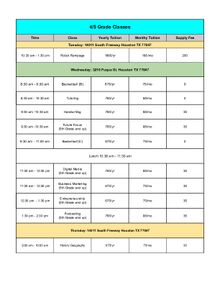 4th-5th Grade Schedule & Tuition PDF Tuition and supply fees are listed per class. Supply fees are charged once per class for the school year. Tuition may be paid monthly, per semester, or for the full year in advance. All registration, tuition, and supply fees are non-refundable. Download "grades4and5 spring 2026.pdf"