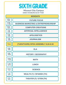 6th Grade Schedule & Tuition