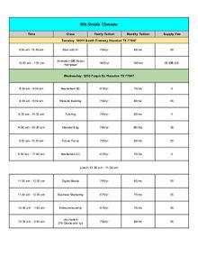 8th Grade Schedule & Tuition PDF Tuition and supply fees are listed per class. Supply fees are charged once per class for the school year. Tuition may be paid monthly, per semester, or for the full year in advance. All registration, tuition, and supply fees are non-refundable. Download "8thgrade20250630-872442-nkqtdy.pdf"
