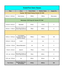 K-1st Grade Schedule & Tuition PDF Tuition and supply fees are listed per class. Supply fees are charged once per class for the school year. Tuition may be paid monthly, per semester, or for the full year in advance. All registration, tuition, and supply fees are non-refundable. Download "Kinder and First Grade 2026 Spring.pdf"